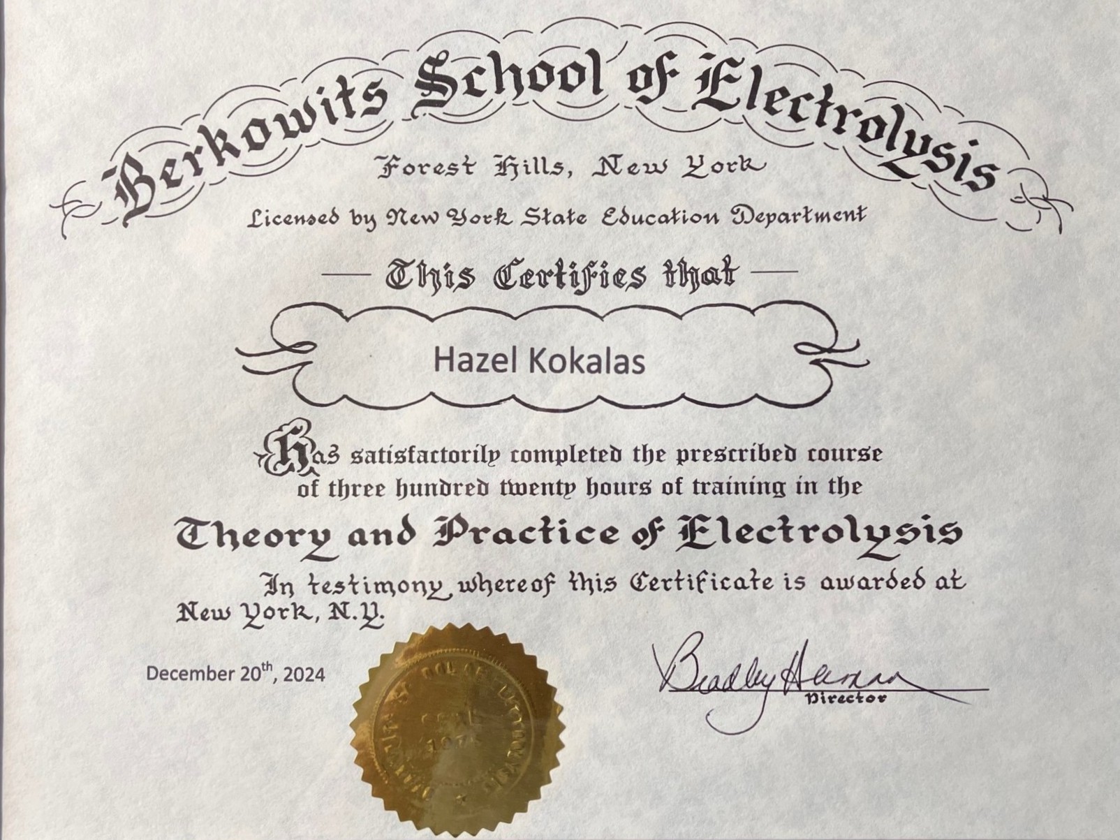 Welcome to Nova Electrolysis! Hi, I'm Hazel. I first learned about electrolysis during my own permanent hair removal journey back in the early 00's. Over the years, when receiving treatments on my face, belly, and bikini line, I've learned what to look for when receiving care. I hope to provide you with the same quality of care that I look for. A kind touch, a calming space, and meticulous, steady, effective treatment. I completed the Electrolysis program at Berkowits School of Electrolysis in Forest Hills, NY and am happy to be of service to all body types looking for safe, permanent hair removal.